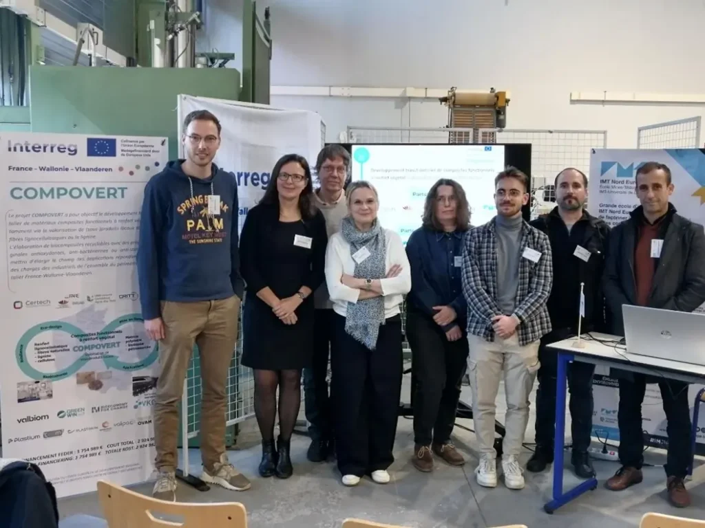 L’approche du projet transfrontalier COMPOVERT, visant l’entièreté de la chaine de valeur, nécessite de nombreuses compétences, humaines, technologiques et scientifiques. Dans ce contexte, les cinq partenaires (Certech, Université de Reims Champagne-Ardenne UMR FARE, Université de Liège Gembloux Agro-Bio Tech, CRITT Matériaux Innovation et IMT Nord Europe) conjugueront leurs efforts pour répondre à la demande croissante de produits biocomposites performants plus éthiques, durables et locaux en collaboration étroite avec les quatre partenaires associés (Bioeconomy For Change, Valbiom, Greenwin et Centexbel).